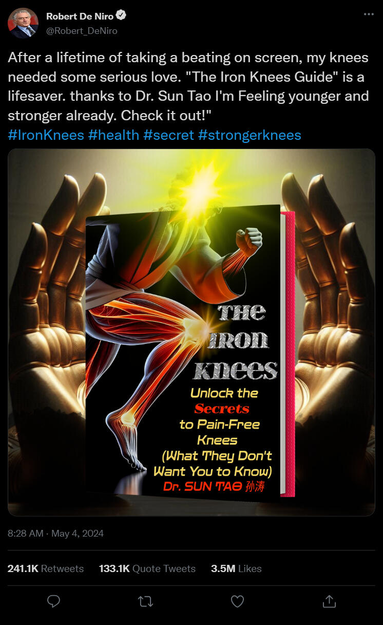 "the iron knees: Asian Secrets for Natural Joints Rejuvenation"(Experience the Difference: We've combined the wisdom of martial arts masters with cutting-edge medical knowledge to deliver a truly valuable and scientific method for your knee health!)it's been hidden by Asians and passed from generation to generation for 1300 years!!this is how you can start renewing your knees to the point that you feel 21 again...